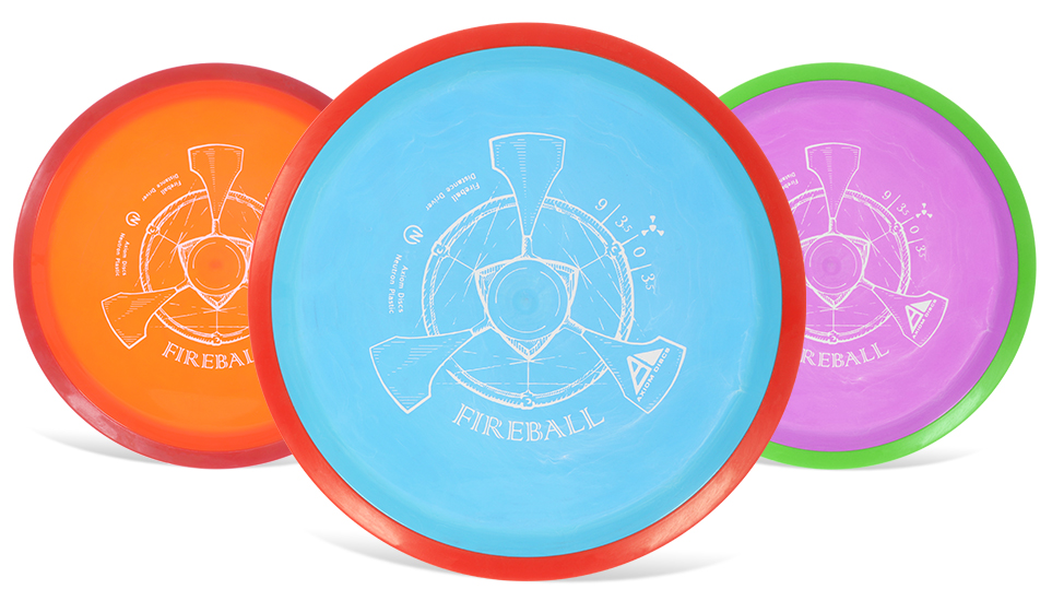 The Fireball is overstable and wind-resistant like the MVP Motion but has an overall straighter and longer flight profile. The Fireball has a longer forward push during its early stage of fade, where the Motion would have begun a long gradual fade. At the end of its flight, the Fireball will drop later and more abruptly than the Motion.