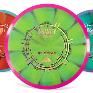 The Insanity is best described as a worn-in MVP Inertia, with a slightly more high-speed turn and a diminished fade. For average power throwers, the Insanity will be remarkably straight, while high power throwers can execute precise flip and turnover lines with ease. Whether you’re looking for that sweet-spot worn disc flight, or you’re looking to achieve bigger Inertia lines with less power, give Insanity a shot.