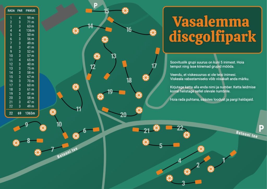 Kõige silmatorkavam on kindlasti korvide arv. Kui tavapärane discgolfirada koosneb 18 korvist, siis Vasalemmas ootab sind ees täismõõtmetes 22-korviline rada! See annab meile võimaluse pakkuda pikemat ja mitmekülgsemat mänguelamust.
